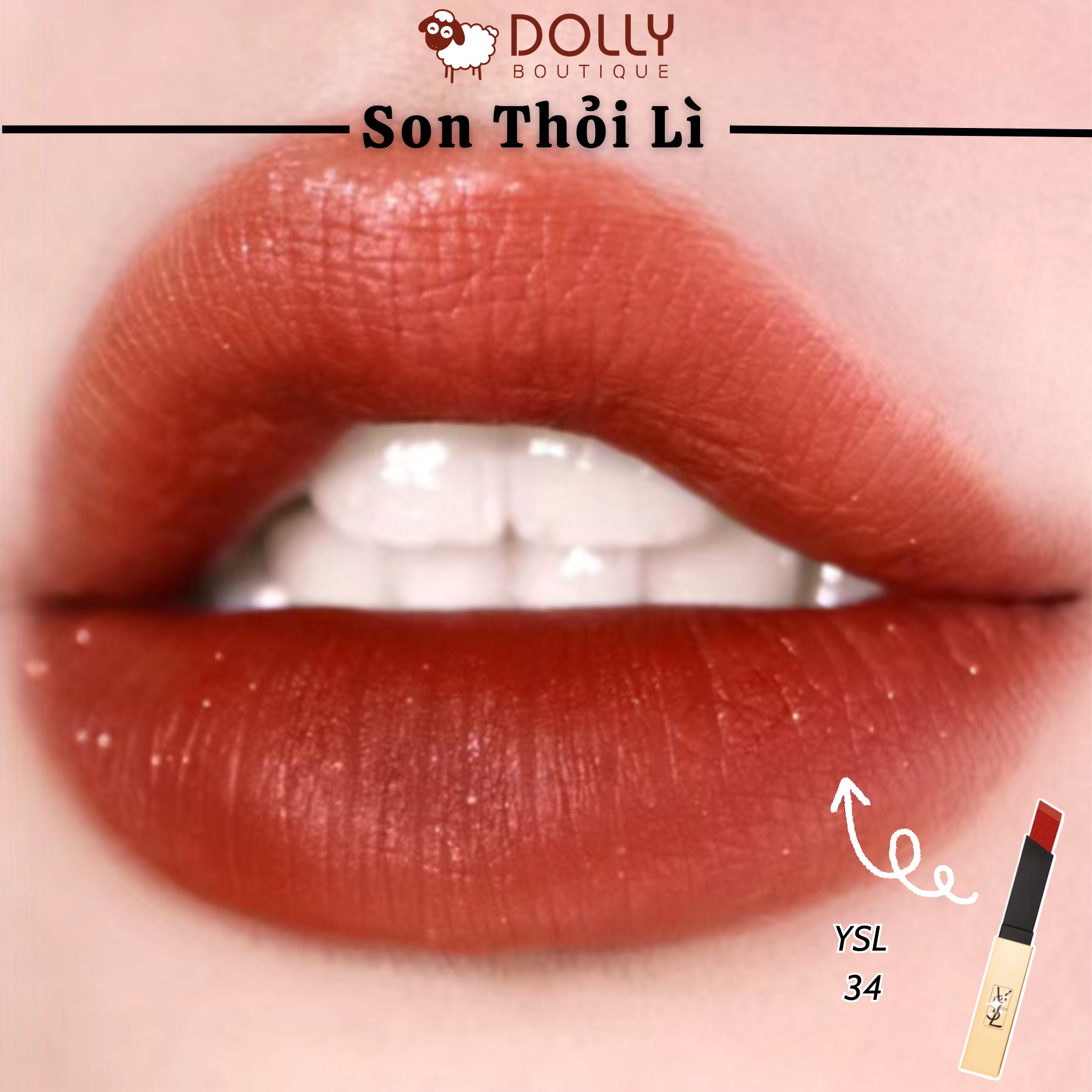 Tông đất pha chút ánh cam đậm, phủ 1 lớp kim tuyến lấp lánh nên sẽ giúp gương mặt bừng sáng hơn hẳn. #YSL34 các nàng nhé