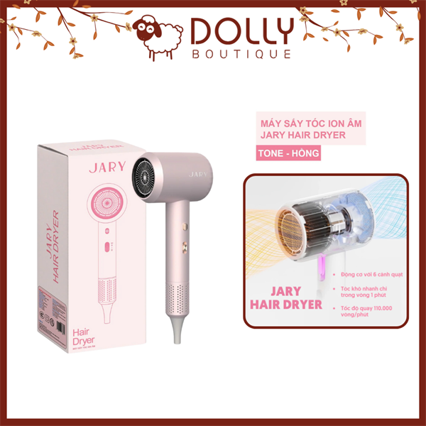 - Máy sấy tóc ion âm Jary Hair Dryer tone hồng đang là lựa chọn hoàn hảo cho những ai đang tìm kiếm sự kết hợp giữa công nghệ hiện đại và thiết kế sang trọng. Sản phẩm nổi bật nhờ công nghệ ion âm giúp bảo vệ tóc tối ưu mang đến mái tóc ống ả và khỏe mạnh.