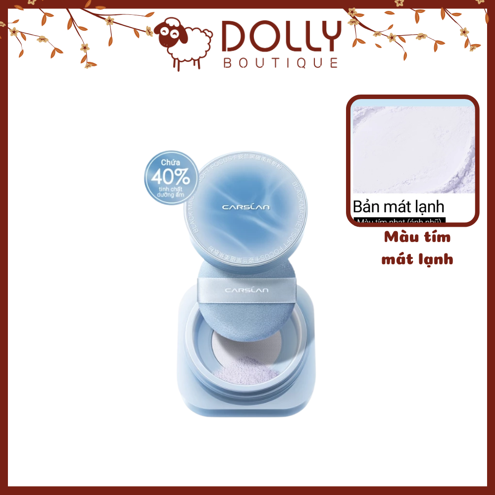 - Carslan Phấn Phủ Dạng Nén 2.0 Black Magnet Soft Focus Powder – phiên bản Carslan 2.0 màu Blue-Purple: Đây là phấn phủ dạng nén/compact bản 2.0 của Carslan với tông màu “Blue Purple” (xanh tím) – thường được mô tả là màu giúp cân chỉnh tone da xỉn màu, giúp da sáng hơn nhẹ nhàng. Màu này tạo cảm giác “mát lạnh”, giúp kiềm dầu tốt và làm đều màu da.