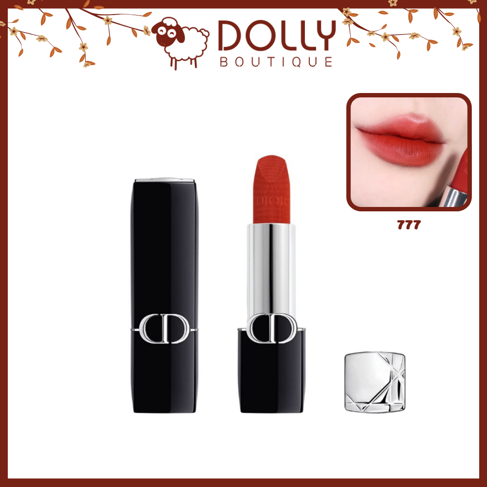 - Son DIOR Rouge Dior - 777 Fahrenheit / Velvet Finish là phiên bản Velvet Finish (hơi lì nhưng vẫn mềm môi) của son Dior Rouge Dior tông 777 Fahrenheit — biểu tượng của sự nổi bật, sang trọng và mang tinh thần táo bạo. Đây là một trong những tông màu được Dior lấy từ bộ sưu tập Rouge Dior kinh điển, với sắc đỏ cam rực rỡ, ấm, hợp mọi tông da Á Đông.