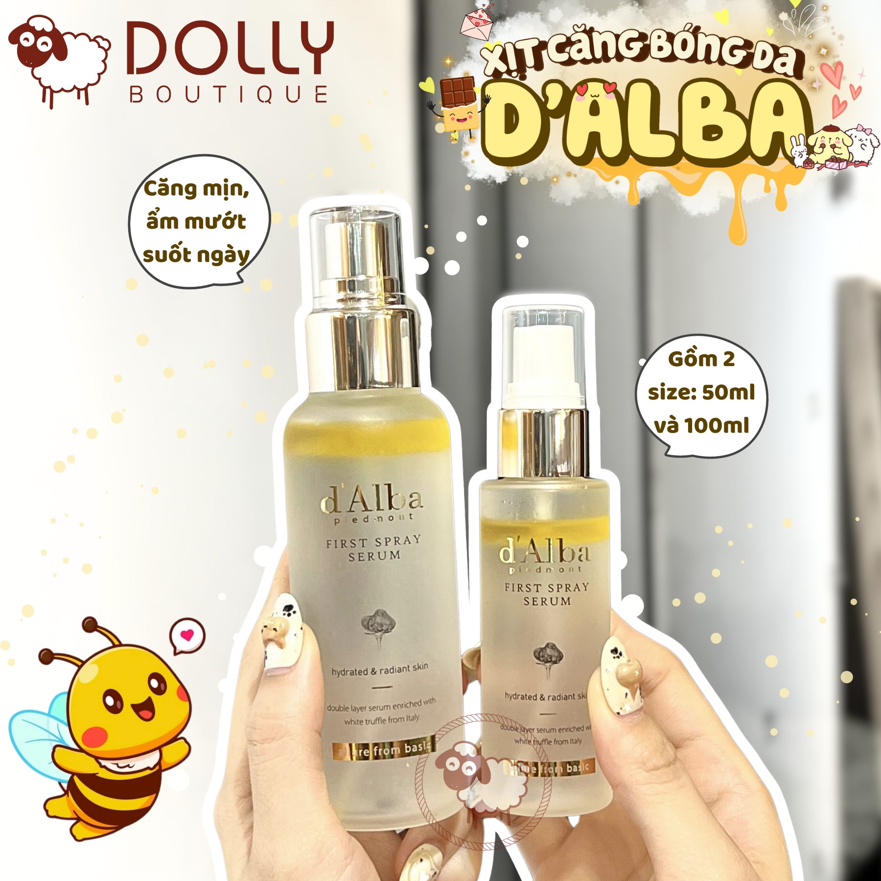 - Serum Dạng Xịt D'alba là tuyệt phẩm độc đáo với dưỡng chất từ nấm Truffle – “kim cương đất” đắt đỏ nhất thế giới. Sản phẩm cung cấp chất dinh dưỡng cho da, làm mờ nếp nhăn và làm căng bóng làn da.
